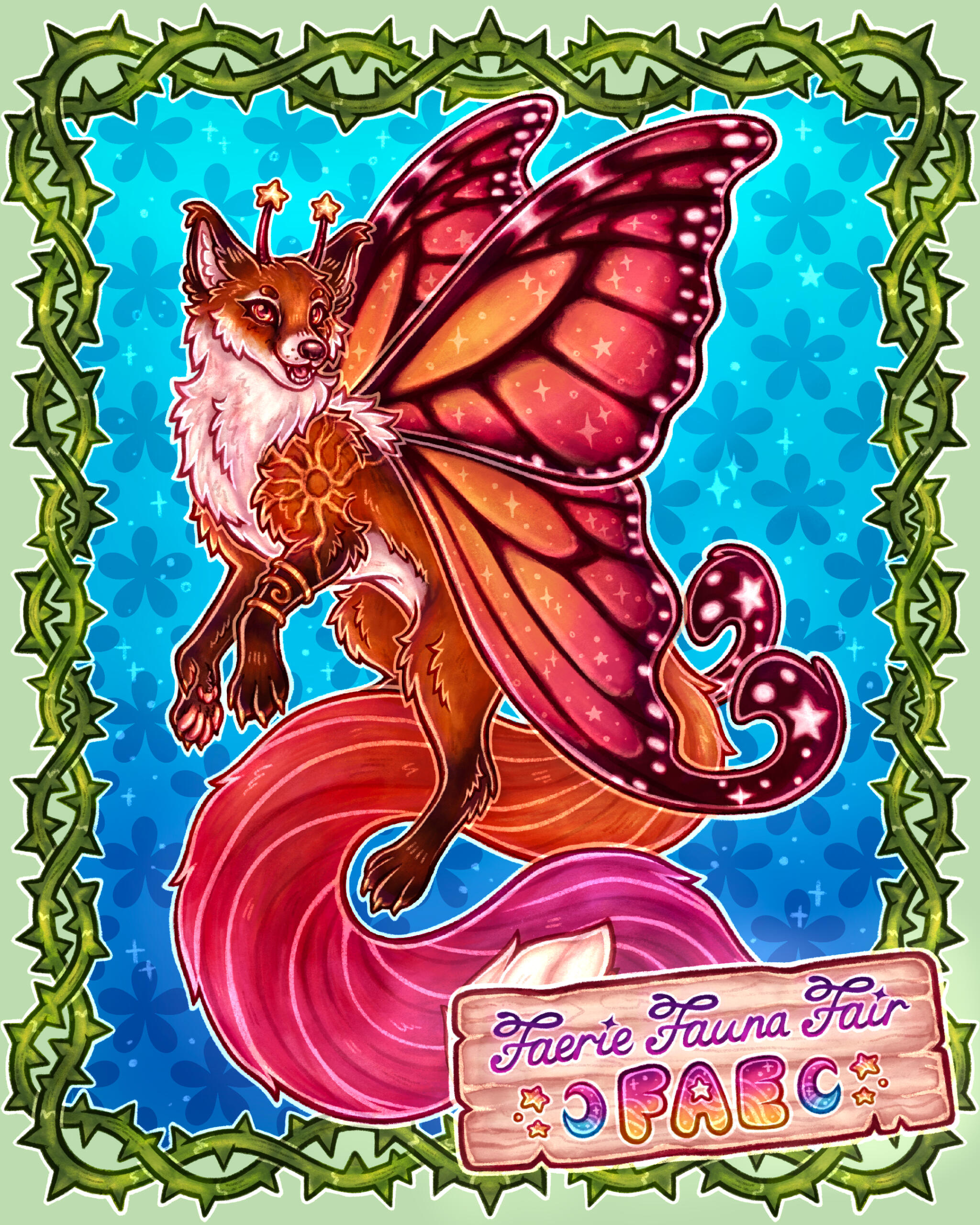 Fae is a faerie winged fox, a cheerful guardian of the sun-kissed woodland, and a creative soul!Our adorable Fae represents all the cute, whimsical, and pretty animal/faerie creature art at our event~