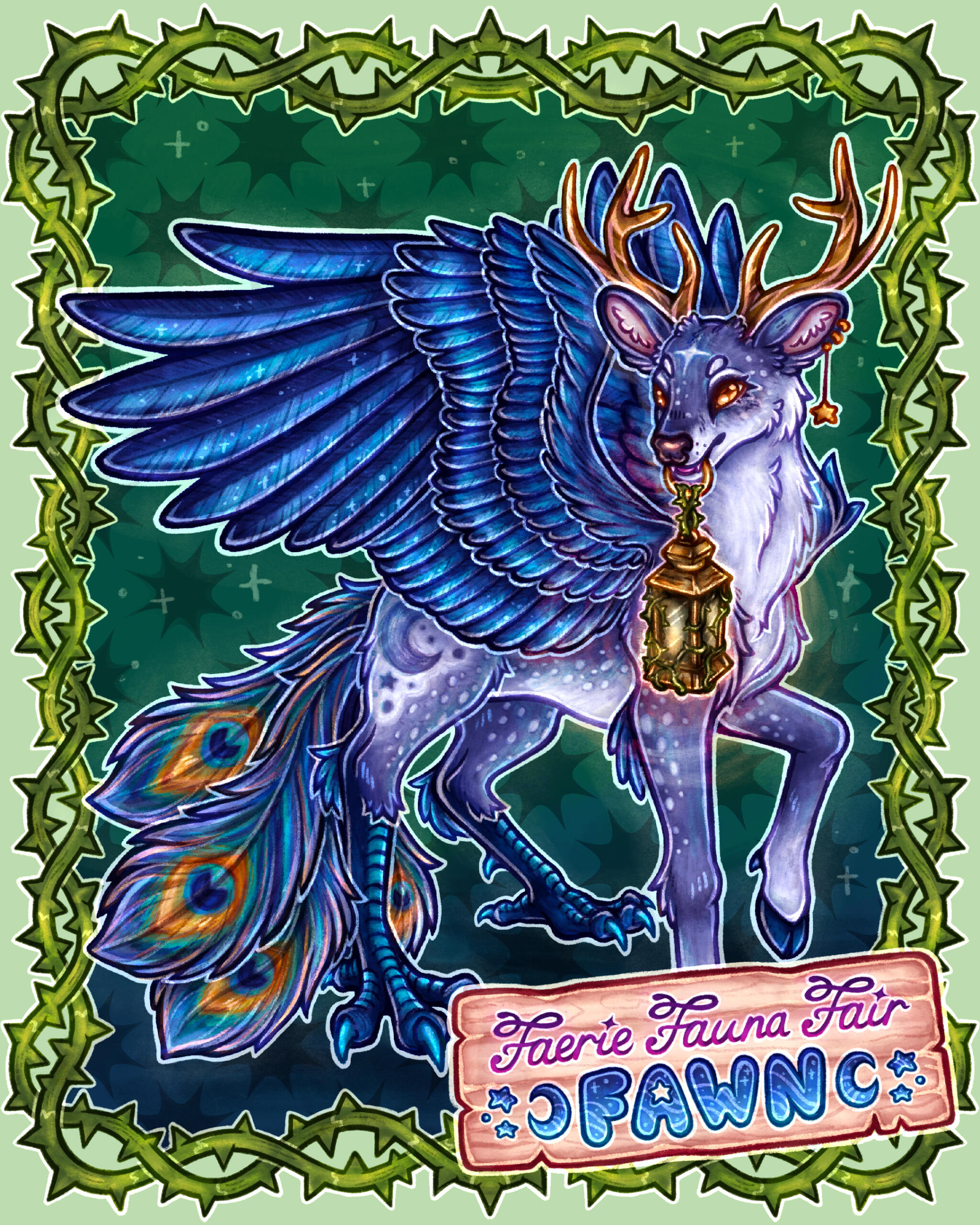 Fawn is a mischievous Starry-winged peryton, a guardian of the night forest, and renowned trickster!Our lovely Fawn aims to represent the ethereal, cryptic, yet beautiful fantasy side of our event's art direction~