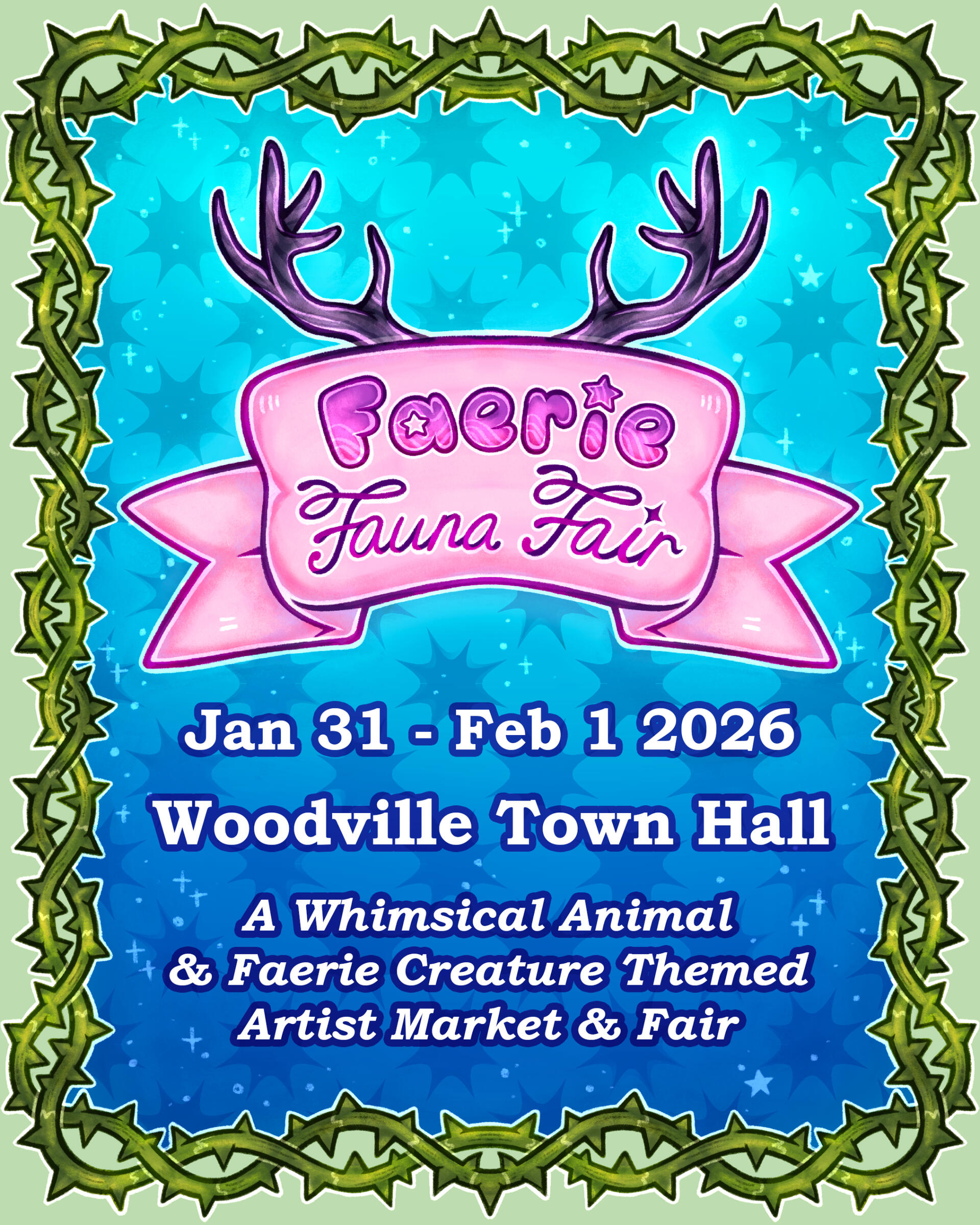 We welcome you to the whimsical woodlands of the Faerie Fauna Fair!! ✨🌷💖This is a unique art-driven event focused on original, animal and faerie/fantasy creature themed art and activities!We'd love to see you join us for a whimsical, art-filled market and fair next February! 🦌🌙💕